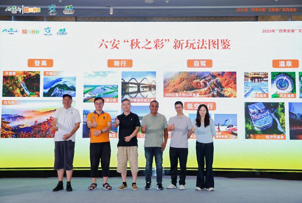 本次推介会以独具匠心的形式打破传统推广边界。大别山民歌《四季飘》悠扬开场,瞬间唤醒山水情怀。六安秋季五色主题线路重磅发布,以“色彩”为线索,精妙串联起六安秋日的斑斓画卷:“黛绿秘境·山水康养线”探大别山生态疗愈,“赤红印记·红色研学线”溯革命岁月传红色文化,“金色悦动·青春探索线”邀年轻群体打卡特色景点,“橙黄乡韵·田园体验线”入乡村田园享秋收喜悦,“纯白鲜香·美食寻味线”品秋日养生美食,每一条都令人心驰神往。
