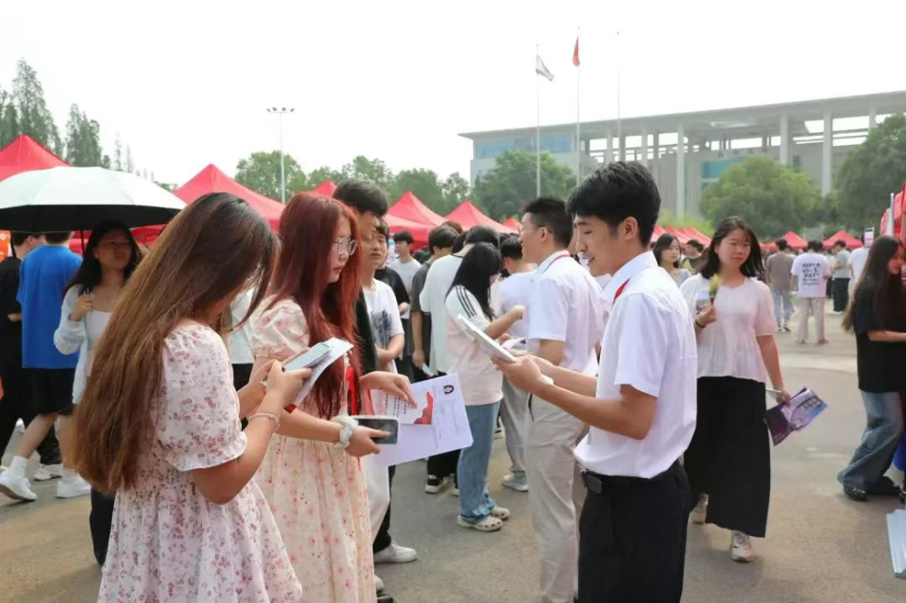 在校园招聘环节,安徽金日晟矿业有限责任公司、金寨视窗等26 家文旅企业携带 460 多个岗位来到现场,吸引了 600 余名学生参与。经过充分的沟通交流,300 余名学生与企业达成初步就业意向。