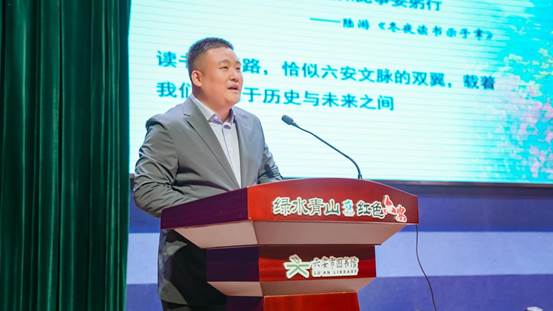 活动伊始,秦国伟在致辞中指出,阅读与行路是六安文脉的双翼。他以皋陶制典的千年智慧为引,结合现代“15分钟阅读圈”的生动实践,通过外卖小哥、深山学子等以书为伴的鲜活故事,展现了全民阅读在六安的蓬勃生机。同时,他提出要深挖大别山红色资源,将革命精神融入研学活动,打造“立体思政课”,让红色信仰薪火相传,彰显六安“厚德、尚法、崇文、奋进”的城市品格,呼吁大家牢记习近平总书记“把学习作为一种追求、一种爱好、一种健康的生活方式”的嘱托,让书香浸润城市肌理,共同书写传统与现代交融的六安新篇章。