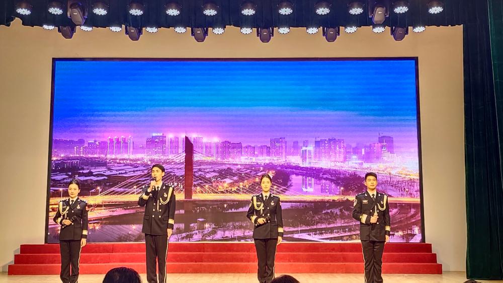 公安局民警何颖、张永晶、金智伟、匡基淦朗诵的作品《每一个警察都熟悉这样的夜晚》被评为优秀奖。