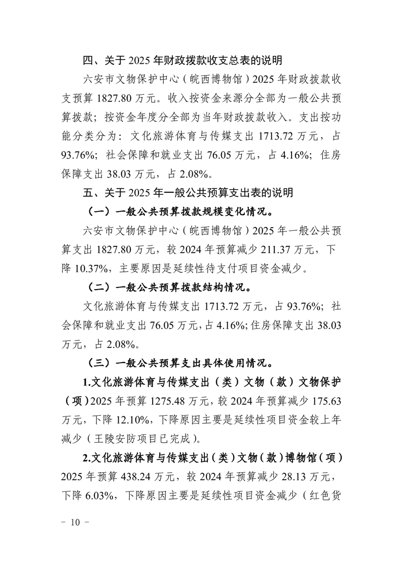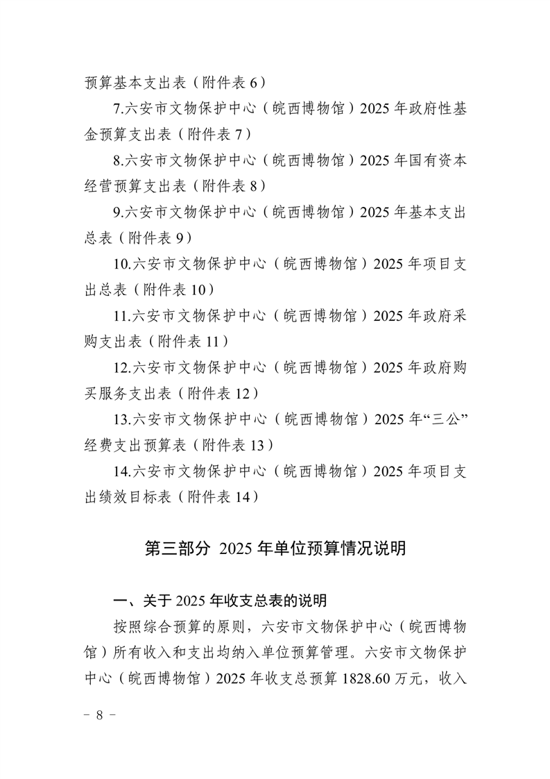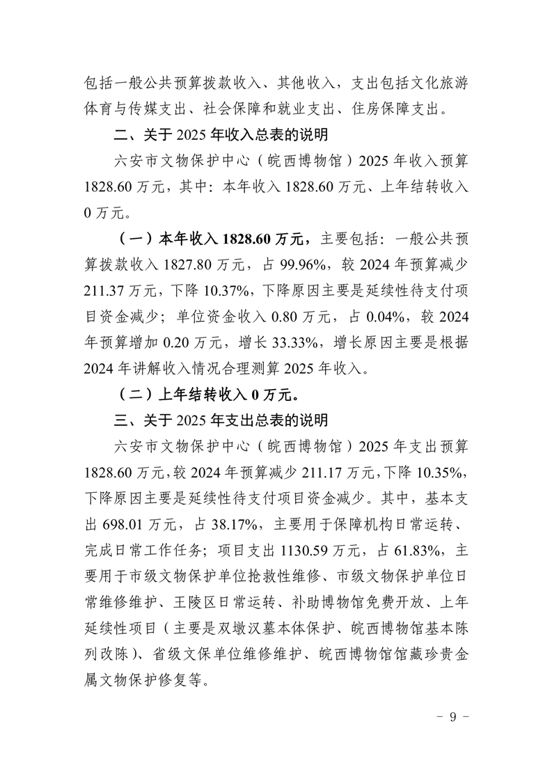午夜探花 文物保护中心(皖西博物馆)2025年单位预算公开
