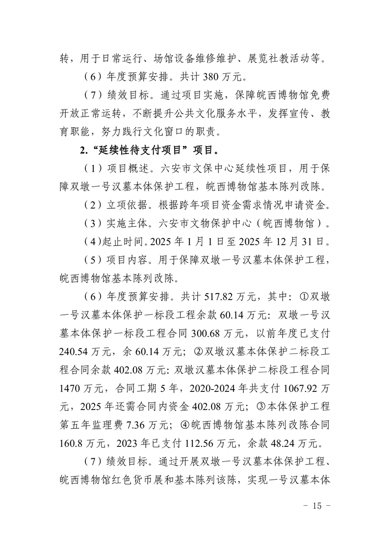 文物保护中心(皖西博物馆)2025年项目支出绩效目标表.pdf标签: