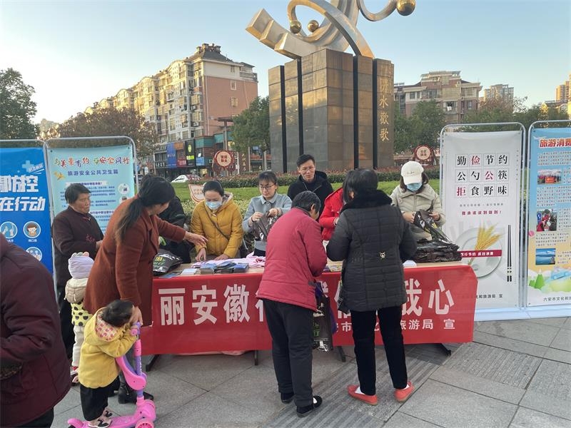 联合裕安区、金安区文旅局在水云涧广场开展旅游诚信惠民宣传活动。