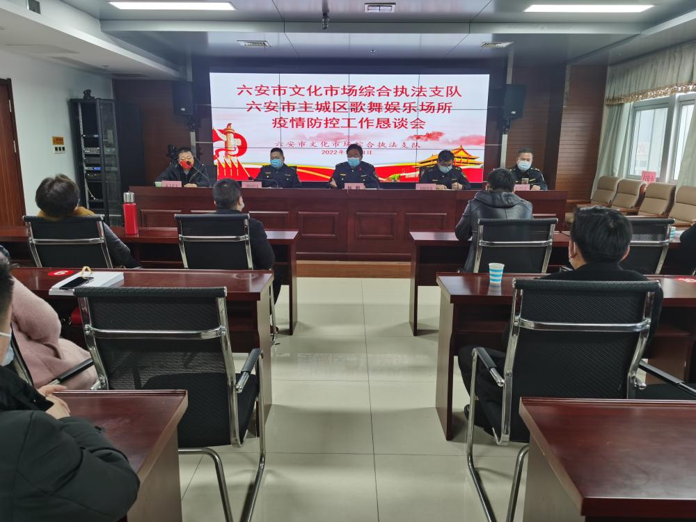 3月23日上午,执法支队召开主城区歌舞娱乐场所(夜总会、KTV等)业主疫情防控工作恳谈会。