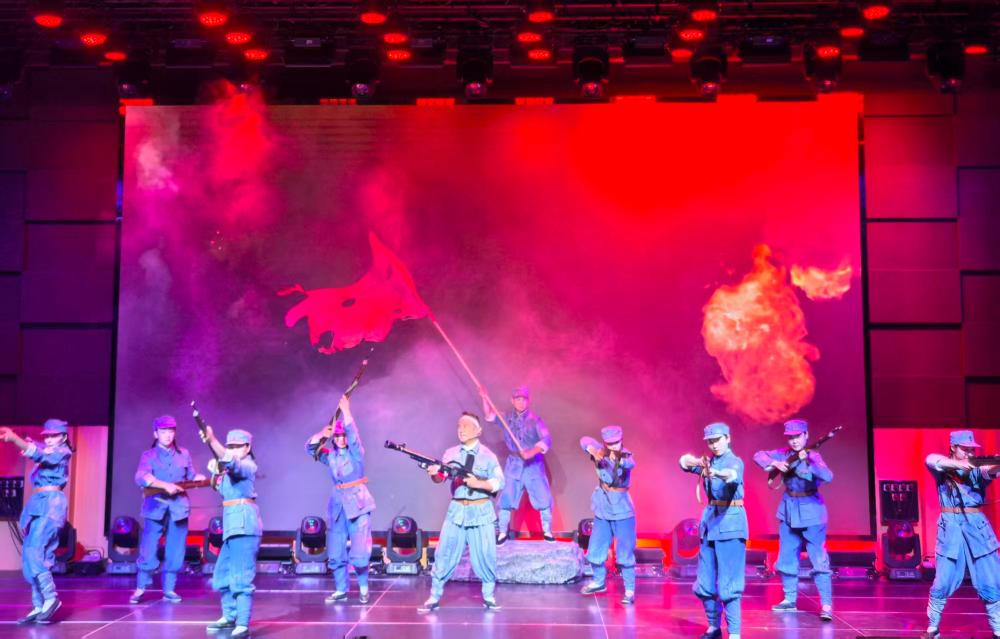 皖西演艺公司党支部充分发挥演艺资源优势,献上民歌剧《大别山之恋》选段《浴血抗日》,十余位演员们以精湛的表演和深情的演唱,再现了大别山地区军民同仇敌忾、共御外侮的壮烈历史,感人至深,引发强烈共鸣。