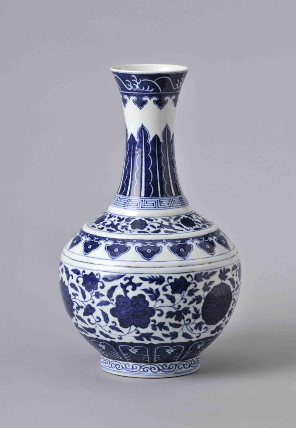 青花缠枝莲瓷赏瓶色彩淡雅、华而不艳、寓意丰富,深受文人雅士的喜爱。它在瓷器史上的霸主地位至今无法撼动。从某种意义上说,青花瓷就代表了中国瓷器,大部分西方人都是通过青花瓷来了解中国瓷器及至了解中国文化的。