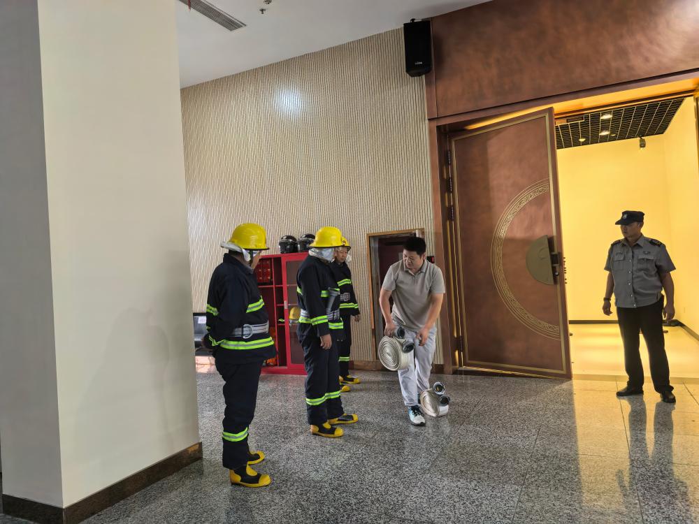检查结束后,保卫部门组织安保人员开展了反恐防暴及微型消防站实地灭火演练,通过演练来进一步提升安保人员的应急处置能力。