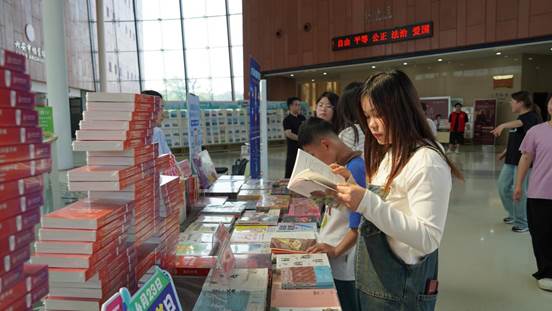 此外,二楼大厅“春和景明 阅享皋城”创意阅读文化市集热闹非凡。市集以多元主题的阅读矩阵,集中展出了包括史志书展、经典红色图书、皖籍作家类作品等在内的各类图书,以及智慧阅读和AI推荐书目,充分展现了传统阅读与现代科技的融合,吸引了众多读者驻足观展。