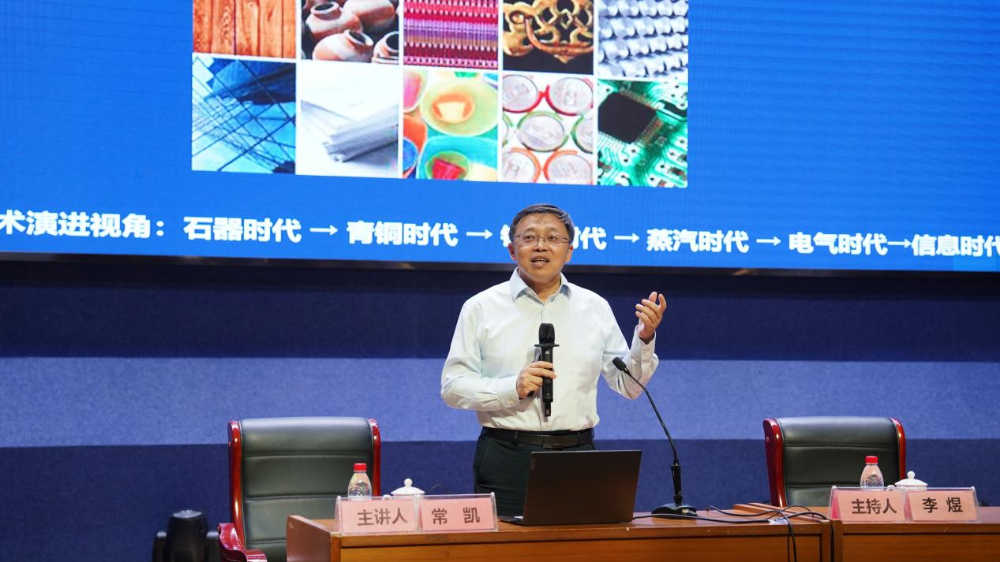 “什么是半导体?半导体在我们生活中有哪些应用?” 讲座伊始,常凯院士以生活中的科技现象抛出问题,以深入浅出的方式,引领听众步入奇妙的半导体世界。从半导体材料的基本特性、物理原理,到集成电路、光电器件等核心技术,常凯院士结合其在国内外科研一线的丰富经验,用“历史脉络 + 原理解析 + 前沿突破”的框架,生动介绍了半导体技术从基础研究到产业应用的完整链条,以及它在现代信息技术、人工智能、新能源、医疗卫生等领域的革命性影响。