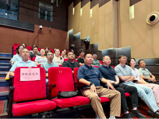 2025年9月3日上午,市文化执法支队党支部组织全体党员干部,在市文化馆一楼小剧场集中收看了纪念中国人民抗日战争暨世界反法西斯战争胜利80周年大会实况直播。