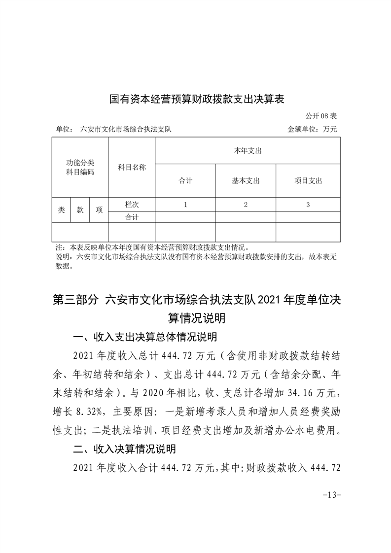 午夜探花 文化市场综合执法支队2021年度单位决算