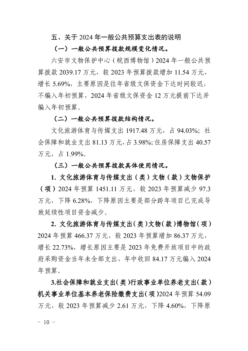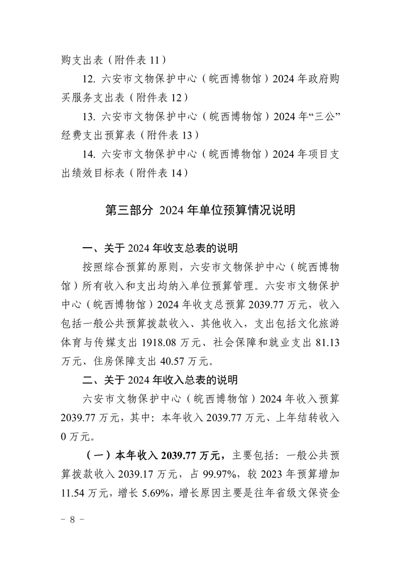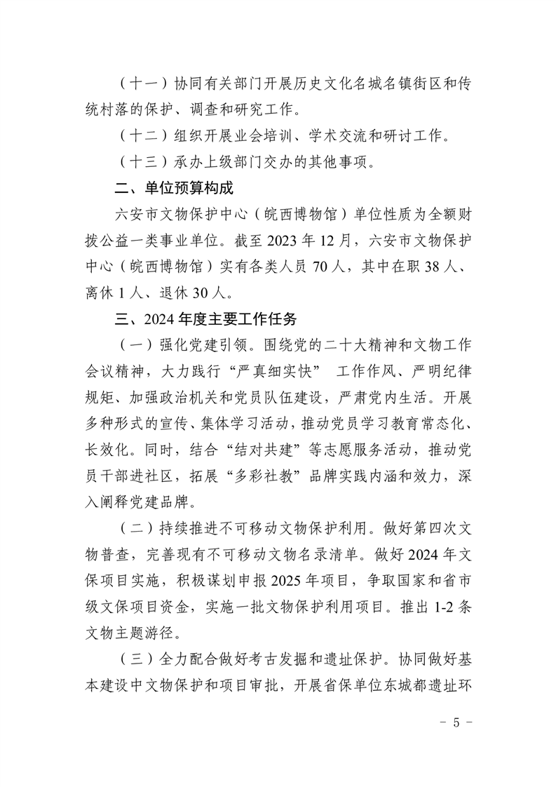 午夜探花 文物保护中心(皖西博物馆)2024年单位预算公开