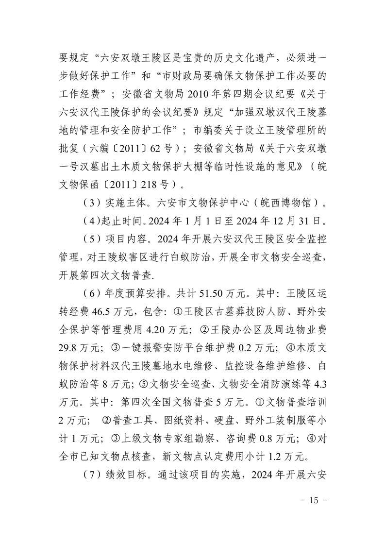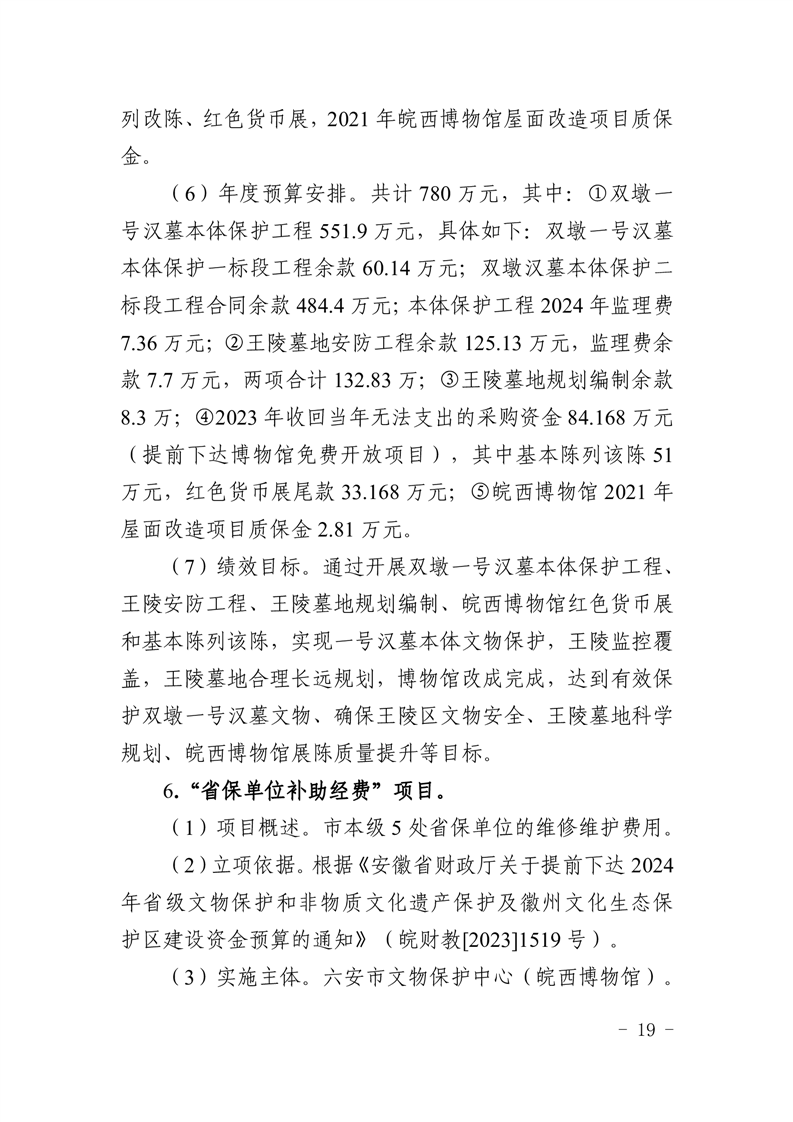 文物保护中心(皖西博物馆)2024年项目支出绩效目标表.pdf标签: