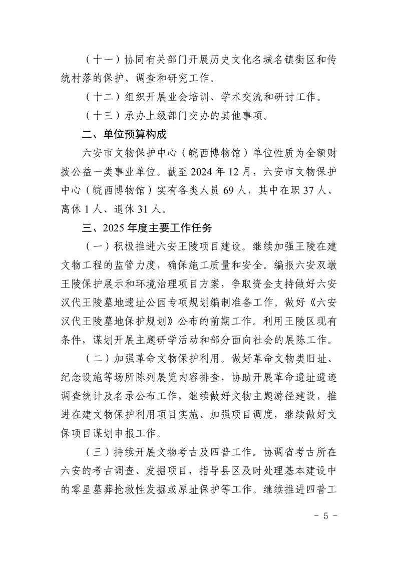 午夜探花 文物保护中心(皖西博物馆)2025年单位预算公开