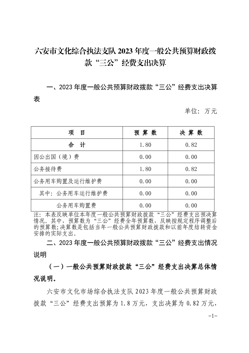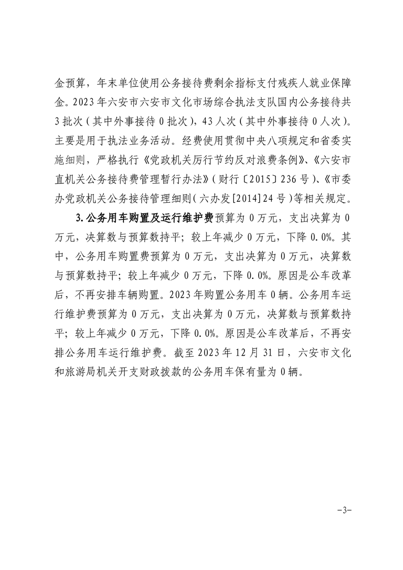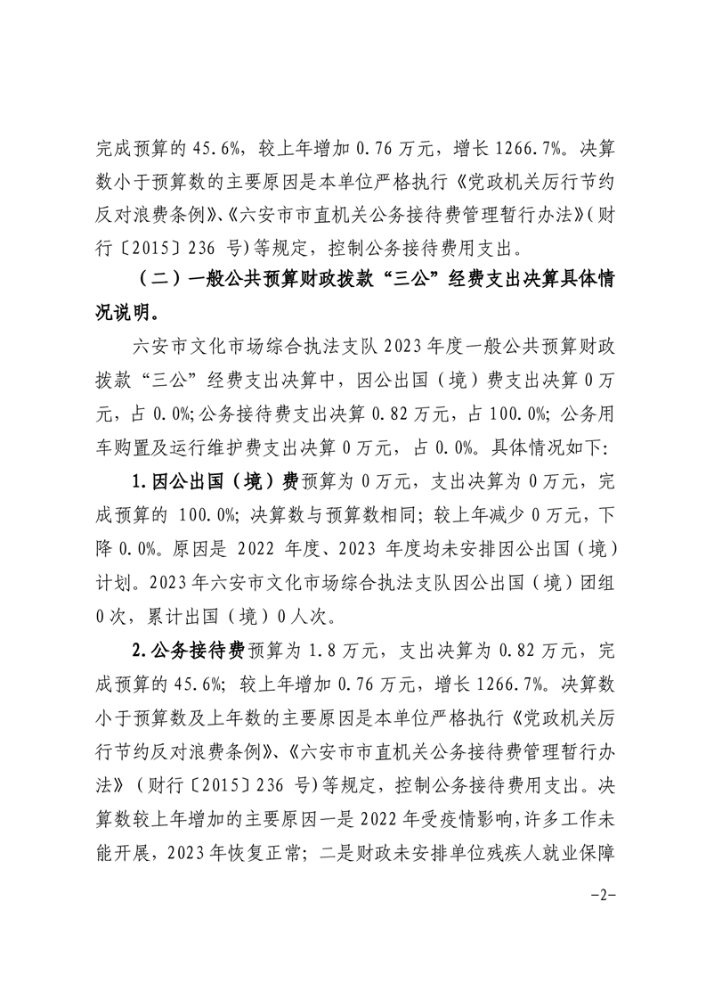 午夜探花 文化市场综合执法支队2023年度一般公共预算财政拨款“三公”经费支出决算