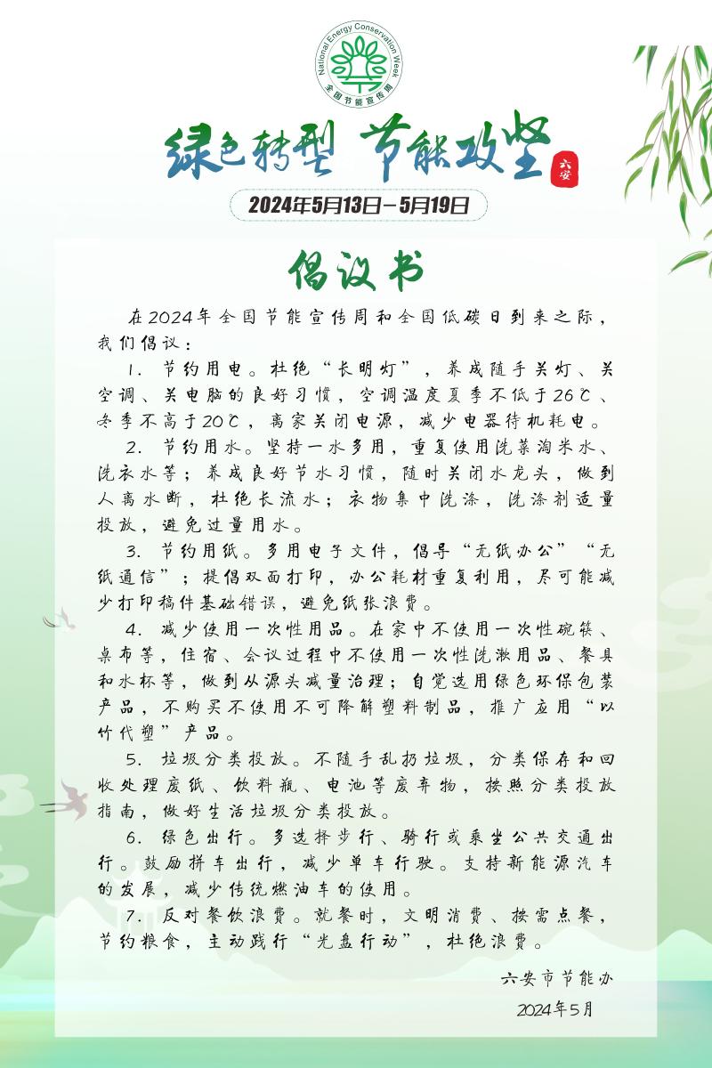 2024年全国节能宣传周倡议书-绿色转型 节能攻坚