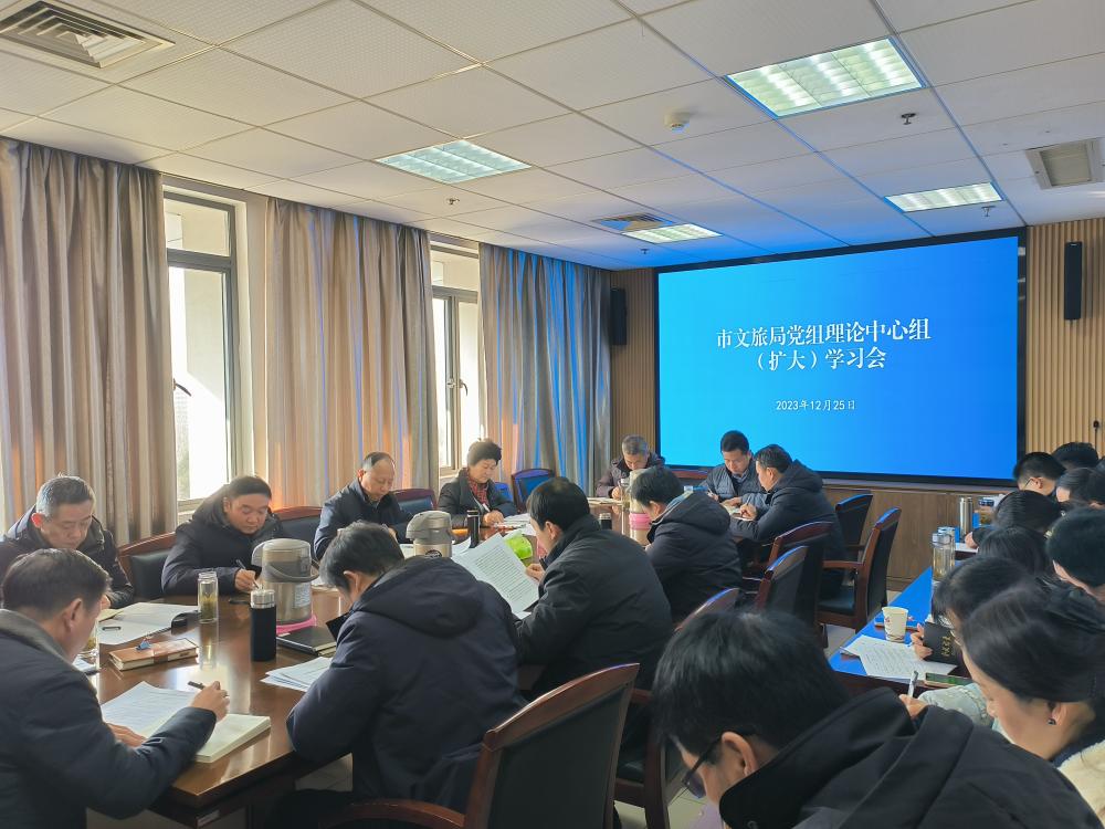 12月25日,午夜探花 召开党组理论学习中心组(扩大)学习会议,会议由党组书记时军主持,局领导班子成员、机关各科室、直属单位负责人参加会议。